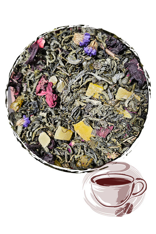 Зелений чай "Мрії Султана" - це чай китайський зелений, ананас, манго, каркаде, квіткові пелюстки.